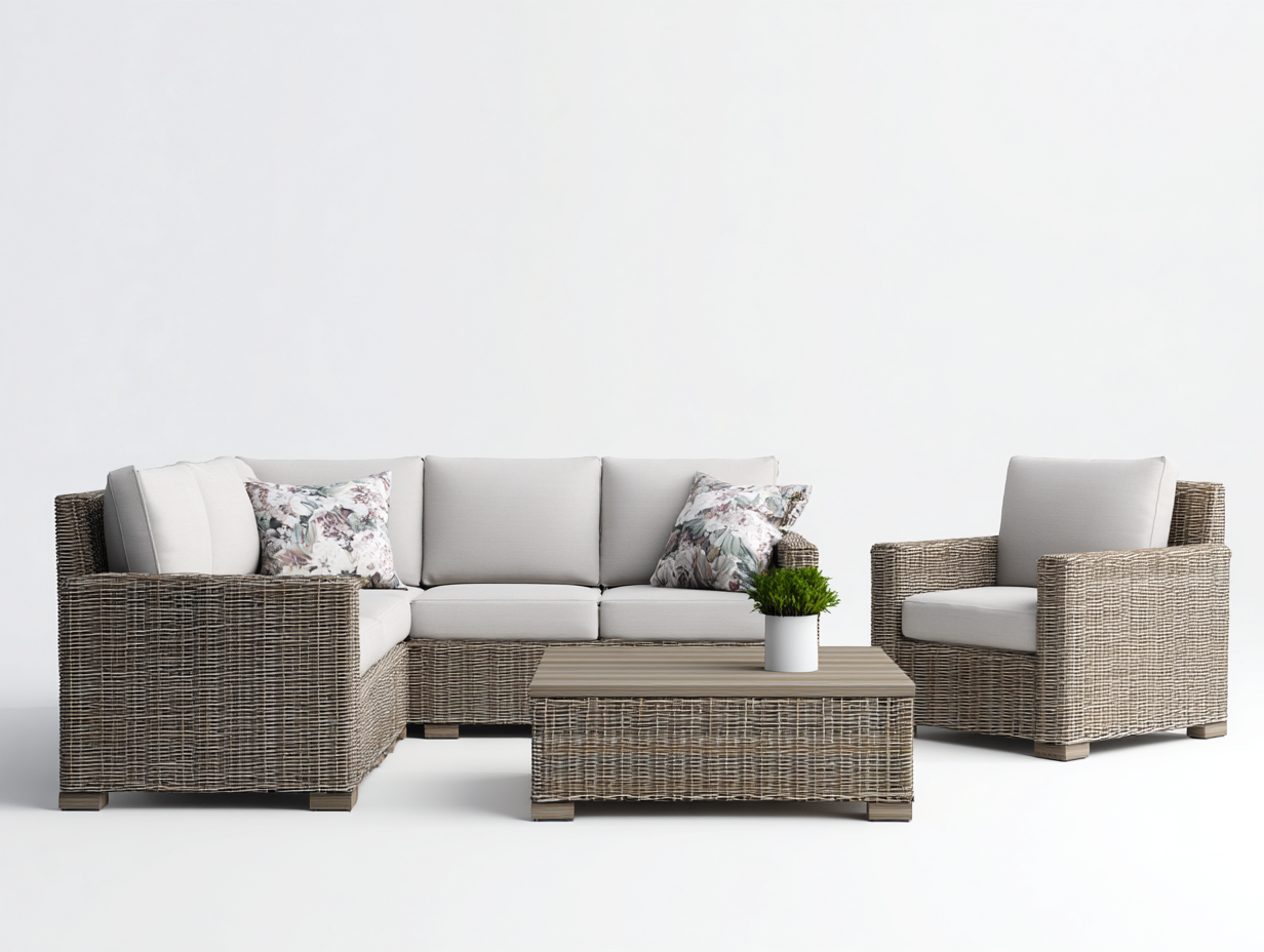 Conjuntos de sofás de jardín ratán sintético 240x180x85 cm-gris-para exterior-diseño moderno