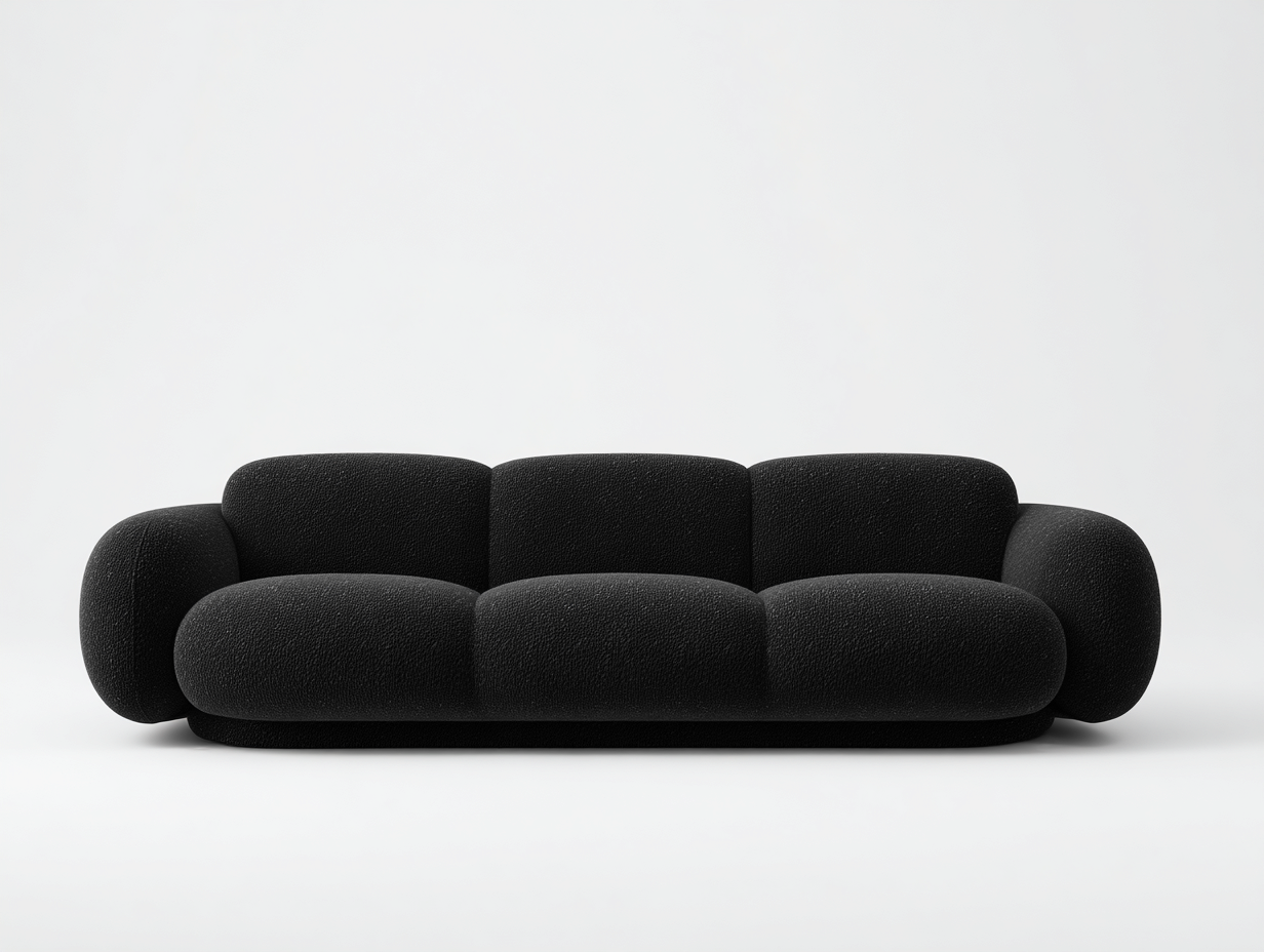 Sofá de 3 plazas tela bouclé 230x100x75 cm-negro-para salón-diseño moderno curvo