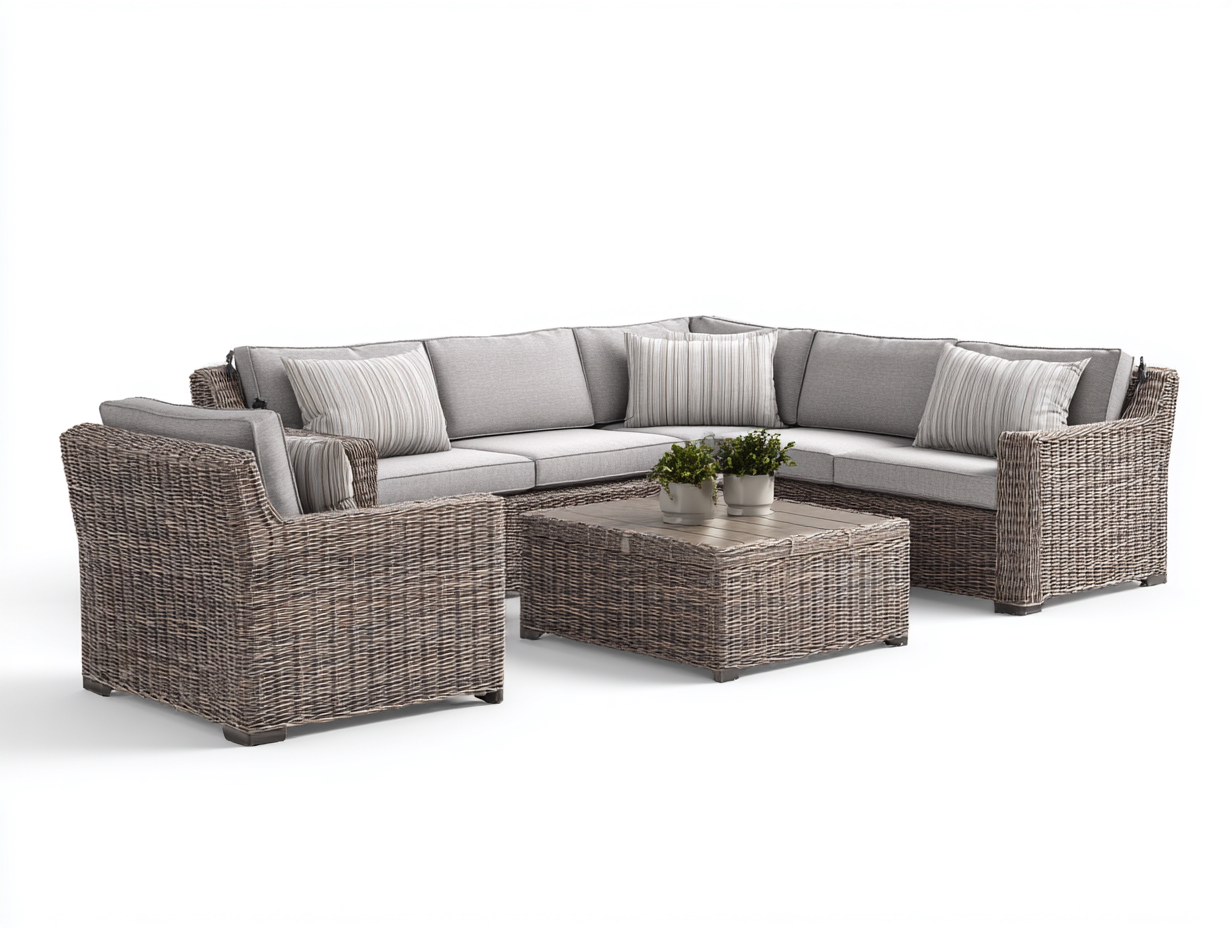 Conjuntos de sofás de jardín ratán sintético 230x170x85 cm-gris-para exterior-diseño moderno