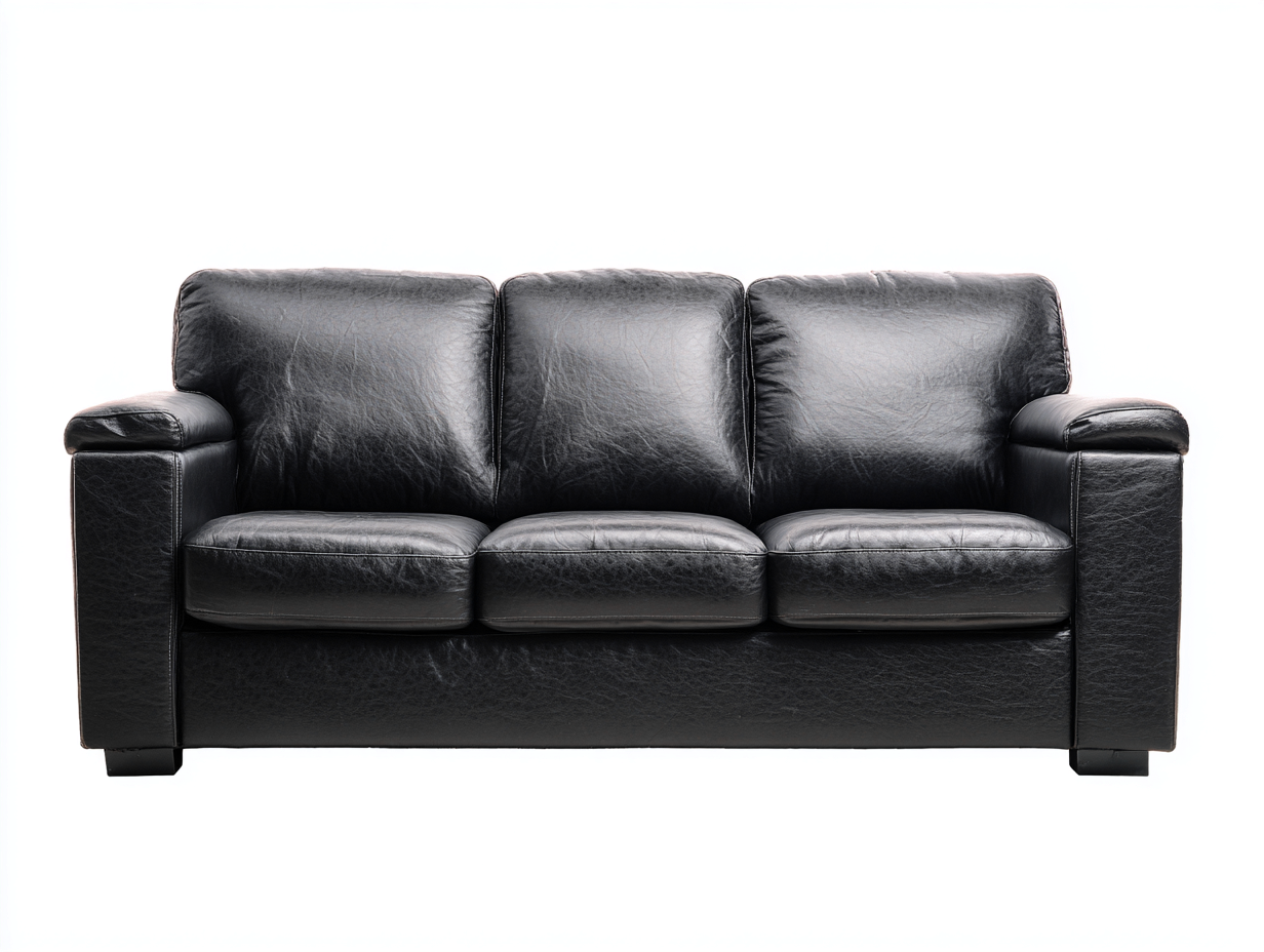 La estructura del sofá está fabricada con un armazón resistente y duradero, recubierto con cuero sintético en color negro que aporta una apariencia sofisticada. Los cojines del asiento y del respaldo cuentan con acolchado cómodo que mejora la experiencia de descanso.